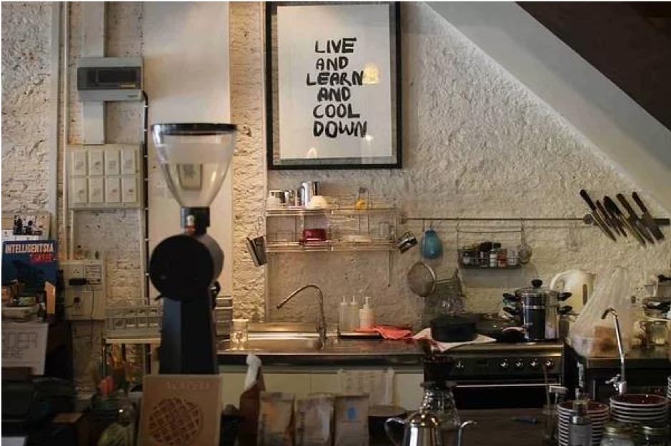 冷白色的 Kaizen Coffee 给人的印象是干净明亮的现代感,墙面的线条很有穿梭感,老板是一名DJ ,假期还会邀请朋友们到店内打碟,年轻男女聚集,浓厚的荷尔蒙的气息扑鼻而来。
